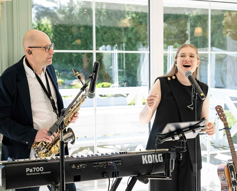 Labas! Susipažinkime. Mes - Jonas ir Paulina, šeimyninis duetas iš Šiaulių. Esame nuotaikingi, muzikalūs, kūrybingi ir pasiruošę Jūsų šventę paversti įsimintina bei nepriekaišinga. Mielai atvyksime į Jūsų jubiliejų, vestuvių, krikštynų ar firmos šventę. Renginio metu galime pažadėti nuotaikingą vedimą, žaidimus, prizus ir svarbiausia - gyvą muziką, grojant saksofonu, klavišiniais ir gitara. Verta paminėti, jog mūsų repertuare gausu įvairios muzikos lietuvių, anglų, ispanų, ukrainiečių kalbomis, todėl esame įsitikinę, jog atrasime, kas patiks Jums ir kiekvienam Jūsų svečiui, nesvarbu, kurios kartos atstovas jis bebūtų.